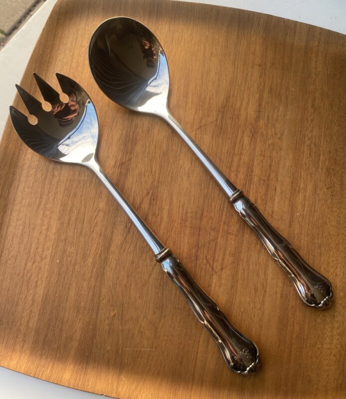 Chippendale salaatinottimet kotimaista 830-leimattua hopeaa, kaiverrus Mitat: P.25