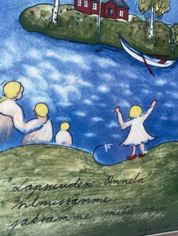 Heljä Liukko-Sundström "lapsuuden onnela" taidelaatta Mitat: myöh.