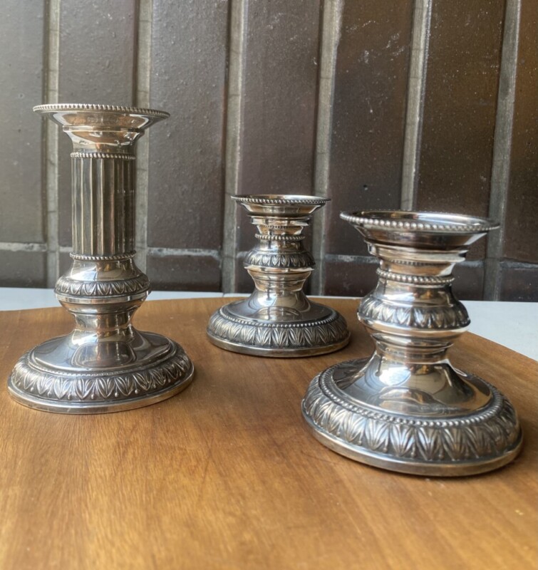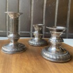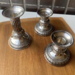 Kynttilänjalat 3 kpl, kotimaista 813 & 830-leimattua hopeaa Mitat: K.7 - 12cm Pienempi pari 160,00 €/yht Korkea 1 kpl 90,00... Lue lisää