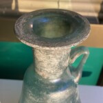 Kulho lasia 1800/1900-luku Mitat: myöh. Myyntihinta: 32,00 € Karahvi vihreää lasia 1900-luku, punttelipohja Mitat: myöh. Myyntihinta: 48,00 €