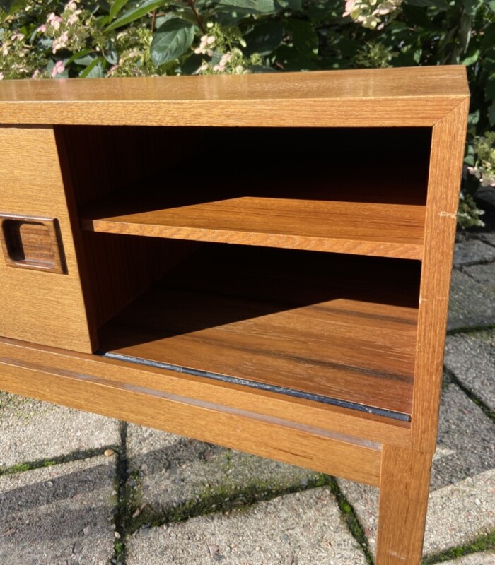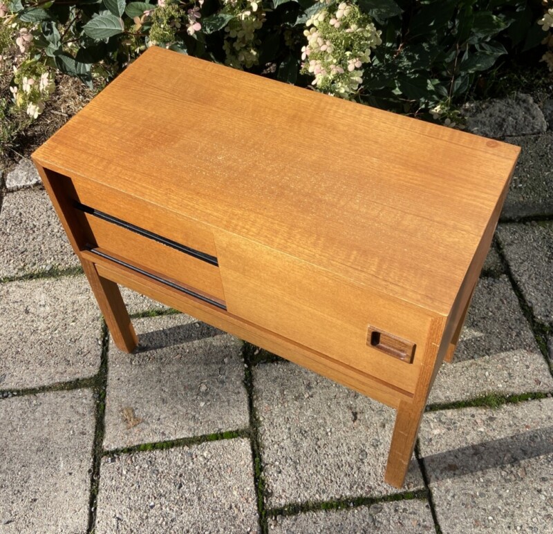 Teak-taso 1960-luku, liukuovi ja 2 kpl laatikot Mitat: K.57 L.64,5 S.32
