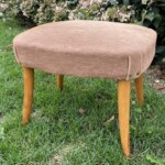 Jakkara/jalkarahi koivua, 1940-luku, pystyjouset, mahdollisesti Boman valmistama Mitat: K.42 istuin 50x36