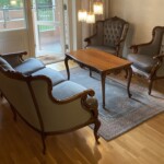 Sohva, 2 kpl käsinojatuolit ja pöytä, erittäin hienokuntoinen empire kalusto 1900-luku Mitat: Sohva L.166 S.56 K.90, tuolit L.61 S.55 K.90,... Lue lisää