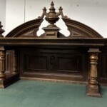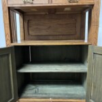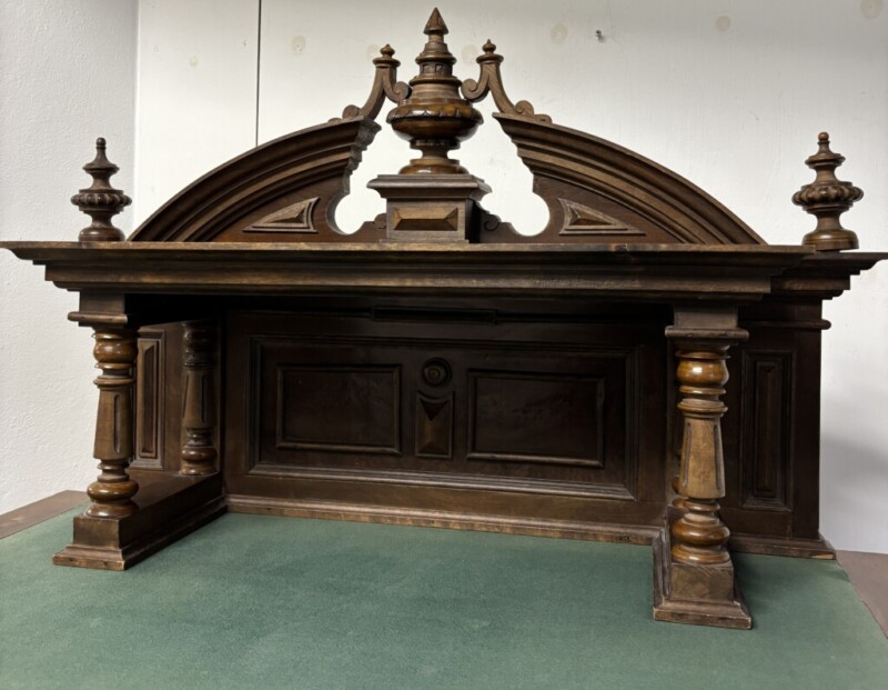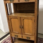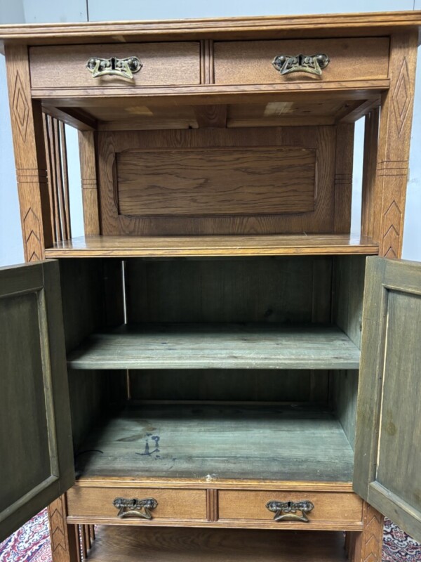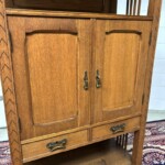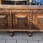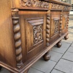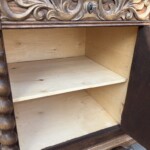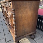 Barokkisenkki tammea 1930-luku, irtohyllyt kaapeissa, 3-vetolaatikkoa Mitat: myöh.