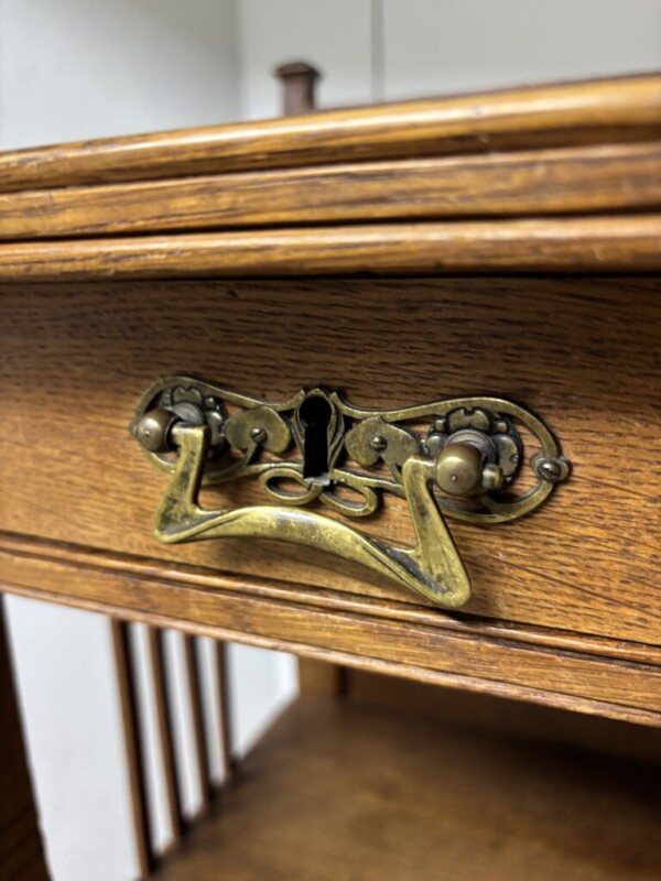 Pöytä jugend 1900-luvun alkupuoli, kaapissa vetolaatikot Mitat: K.80 L.111 S.60