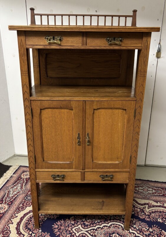 Barokkisenkki 1930-luku, tammikaappi, 2 vetolaatikkoa, sisällä irtohyllyt Mitat: myöh.