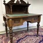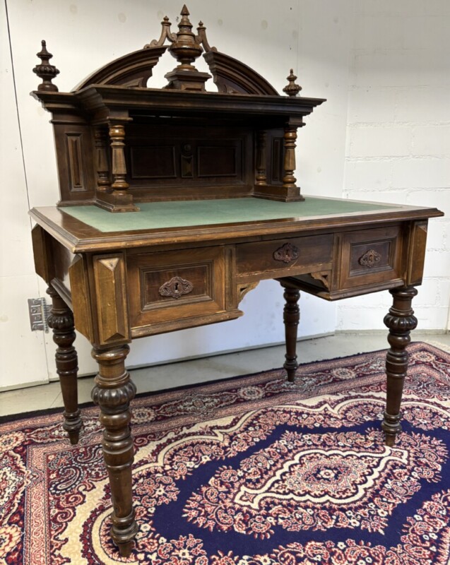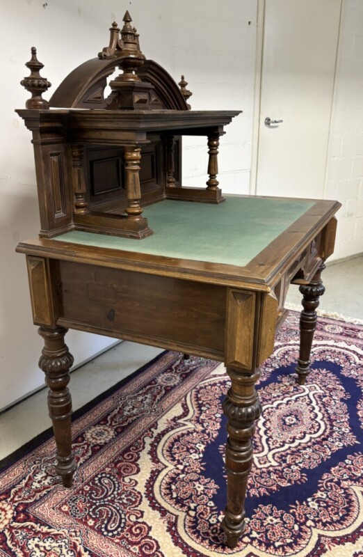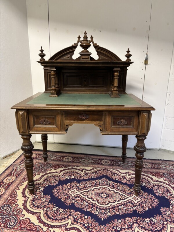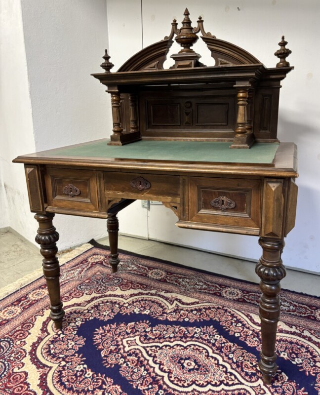 Kirjoituspöytä koivua 1800-luku, renesanssityyli, kannessa verka Mitat: myöh.