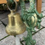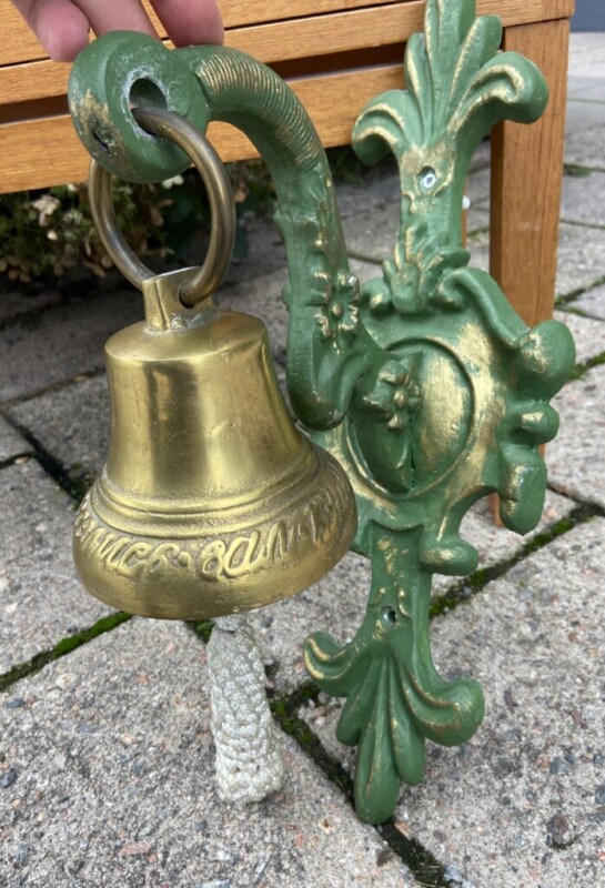 Messinkinen raskas soittokello seinätelineellä Mitat: K.44 S.26