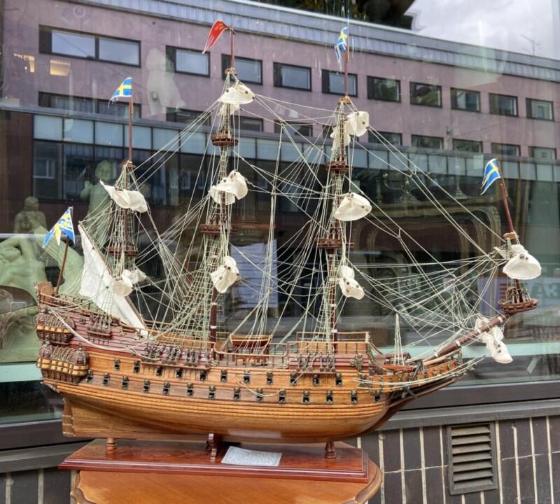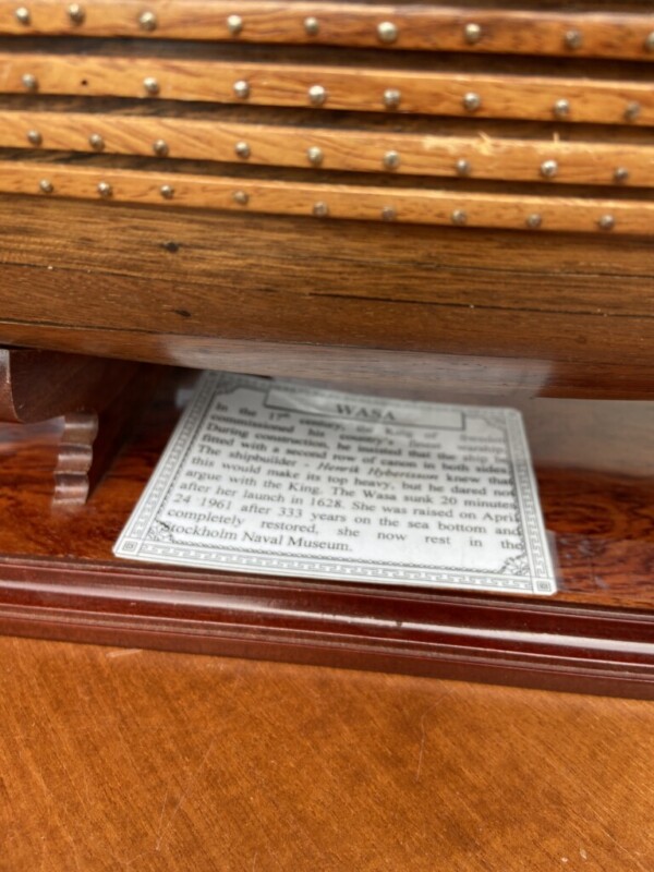 Purjelaiva Wasa laiva, iso pienoismalli jalustalla Mitat: Myöh.