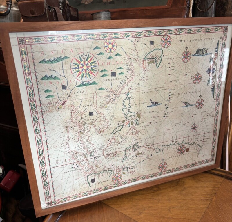 Merikartta Saaristomeri, painettu levylle, mahonkikehys Mitat: myöh.