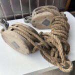 Plokit tammea 2 kpl ja köysivyyhti, merihenkinen sisustus 1900-luku Mitat: Myöh.