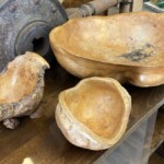 Viilikulhot vihreää lasia 6 kpl 1800/1900-luku. Mitat: K.5 Halk.16 Isot kulhot vihreää lasia 3 kpl 1800/1900-luku. Mitat: K.7,5 Halk.20,5