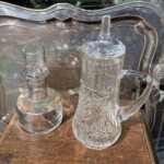 Lasikarahvit 1900-luku Edessä Juomakarahvi Mitat: K.22 Myyntihinta: 45,00 € Oikealla Juomakarahvi Mitat: K.25 Myyntihinta: 35,00 € Vasemmalla, Juomakarahvi, kaulus leimattua... Lue lisää