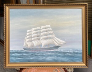 Purjelaiva Pommern, öljyvärimaalaus sign. V.Tanttari -89 Mitat: 66 x 51