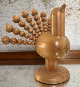 Kaija Aarikka ”Metso” puuveistos, nokassa pieni kolhu, muuten ehjä. Mitat: K.21 L.23