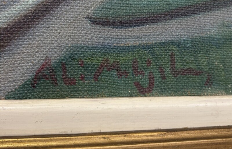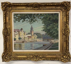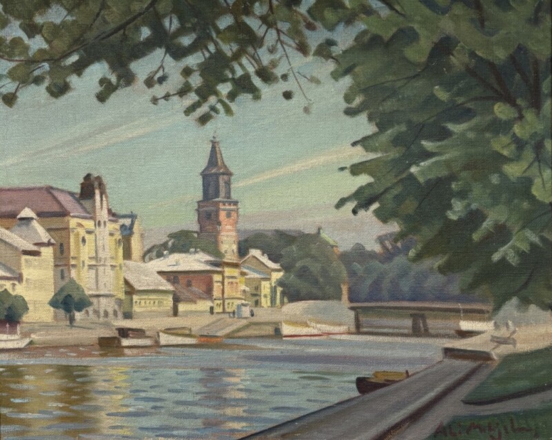 Ali Munsterhjelm, öljyvärimaalaus kankaalle. Näkymä Aurajoelta Turusta. Signeerattu A. Munsterhjelm (1873-1944), Mitat: 87 x 78