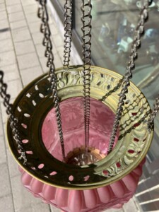 Amppelivalaisin 1800-luku, hissimekanismi, sisällä paikka kynttilälle, upea alkuperäiskuntoinen valaisin, saadaan helposti myös sähköistettyä Mitat: K.60