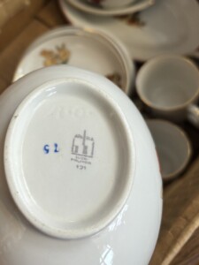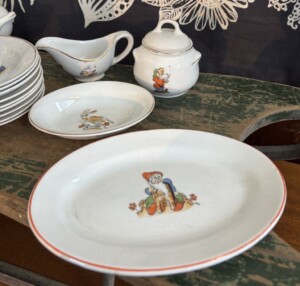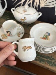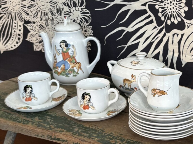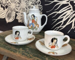 Arabia, Lumikki ja seitsemän kääpiötä yms, toisesta tassista pieni pala irronnut. Harvinainen ja hienokuntoinen kokonaisuus!