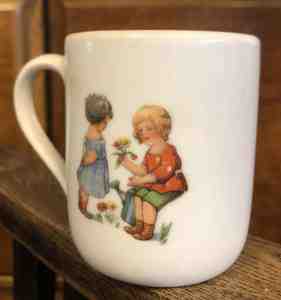 Posliinimuki 1900-luvun alkupuoli, ehjä ja siisti Mitat: K.