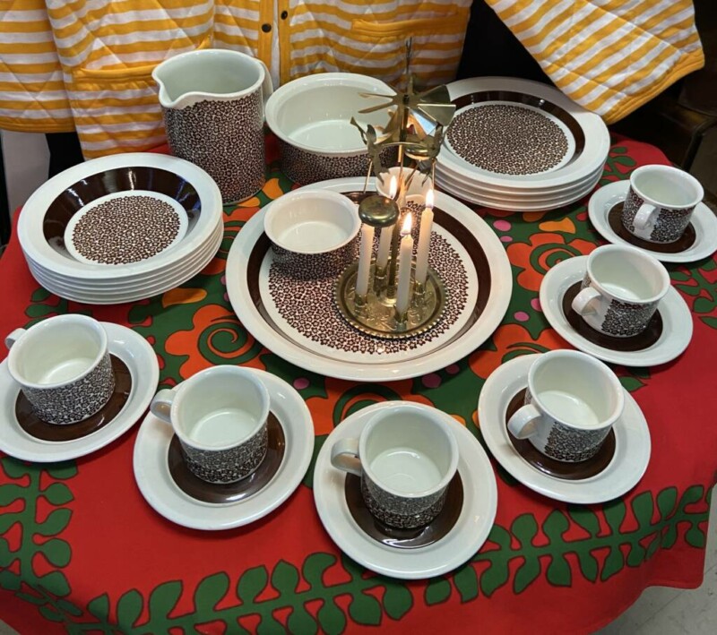 Ruska-astiasto 17-osaa, myydään yhdessä tai erikseen. Matalat ja syvät ruokalautaset MYYTY.