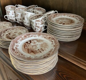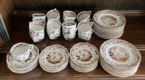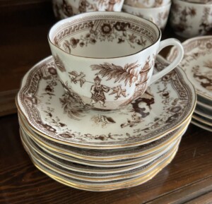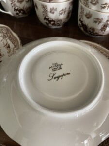 Arabia Singapore kahvikuppi ja tassi 12,00 € ja pullalautaset 10,00 €.