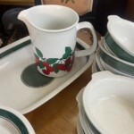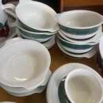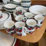 Arabia Kaj Franc Teema,  lautasia, kulhoja, sokerikko ja kermakko.