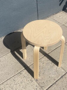 Artek E60 jakkarat, 3 kpl mustalla linoleumilla ja 1 kpl koivuisena.