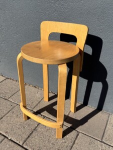 Alvar Aalto, työtuoli/baarijakkara, koivua Mitat: Selkänojank.71,5