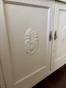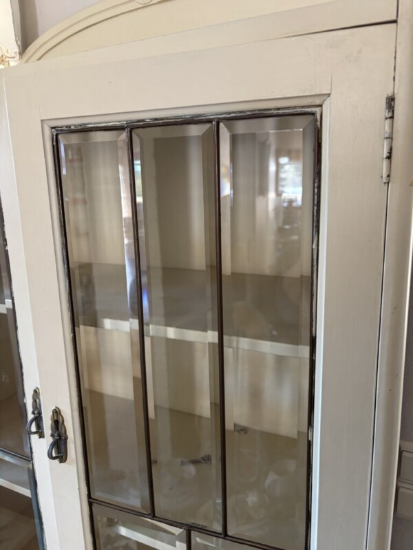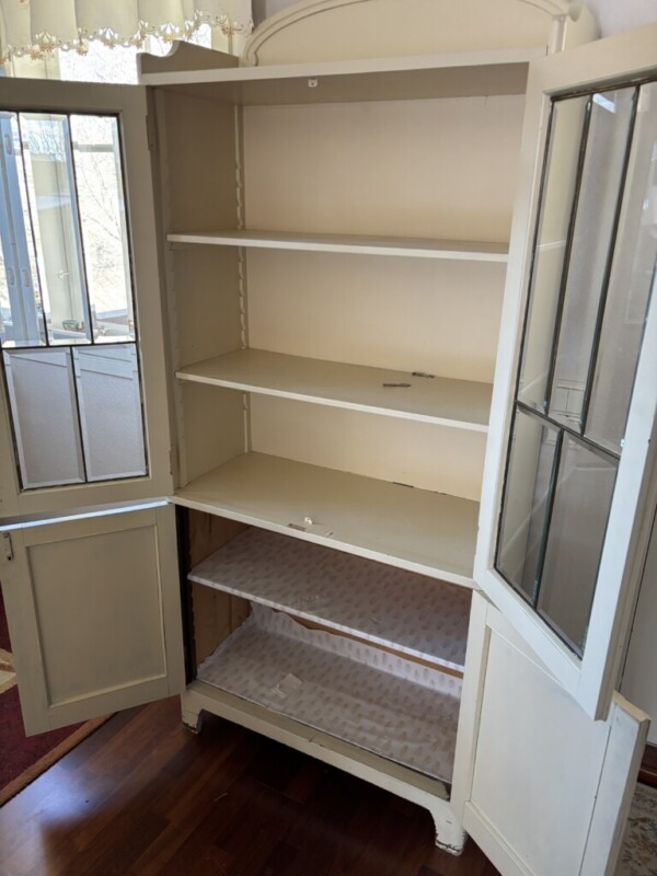 Astiakaappi / vitriinikaappi 1900-luvun alkupuoli, säädettävät irtohyllyt, hiotut lasiruudut Mitat: myöh.