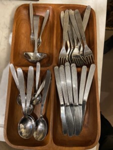Teräsaterimet Sorsakoski, Kaj Franck, Scandia, haarukat, veitset, lusikat ja kauha