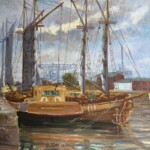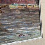 Vanhaa Turkua, Aurajoella purjelaivoja. Öljyvärimaalaus, sign. H.Linsen Mitat: 44×58