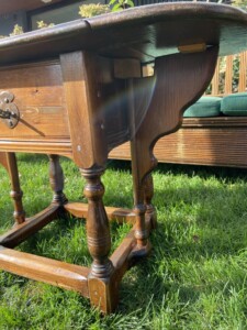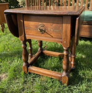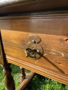 Pieni levitettävä talonpoikaispöytä 1700-luvun malli, vetolaatikko lukolla ja avaimella Mitat: myöh.