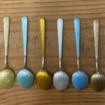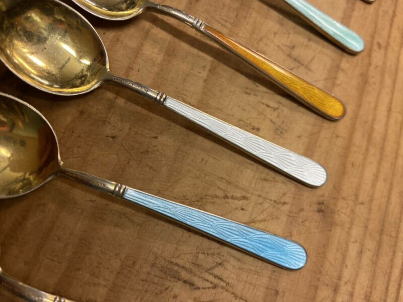 Tillander Hki, emalihopeaa, lusikat 5 kpl, leimattua 916-hopeaa Mitat: 9,5