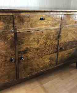 Koivusenkki umpipuuta1940-luku, todella hienokuntoinen, avaimet ja lukot toimii. 3-vetolaatikkoaj 3-ovellista kaappia jossa hyllyt. Mitat: L.150 K.85 S.50