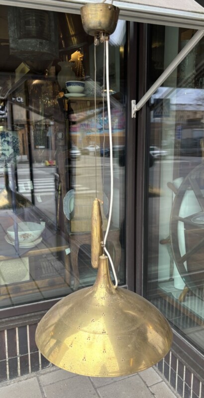 Oy Taito Ab, Paavo Tynell, malli 1965. Messinkivalaisin 1950-luku, säädettävä hissilamppu.