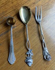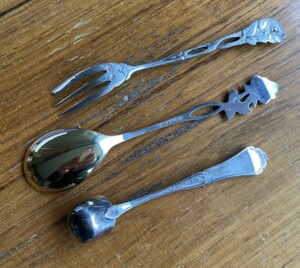 Oikealla Ruusuluhaarukka leimattua 800-hopeaa Mitat: P.13 Myyntihinta: MYYTY