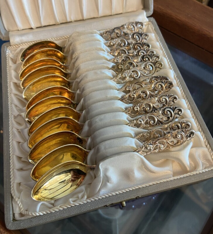 Lusikat 12 kpl rasiassa, leimattua 813-hopeaa Mitat: myöh.