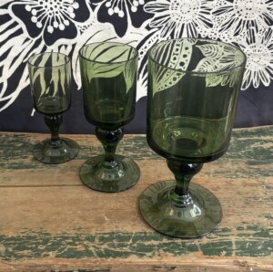 Hugo Gehlin juomalasit 22-osaa, Gullarskruf, n. 1940-luku. Kolmea eri kokoa pienimmästä suurimpaan 5 + 10 + 7 kpl Mitat:
