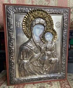 Venäläinen ikoni, messinkiriisa 1900-luku Mitat: myöh.