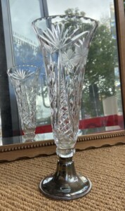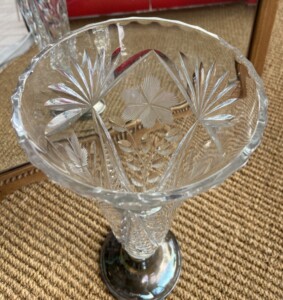 Kristallimaljakko, jalka leimattua kotimaista 813-hopeaa Mitat: K.34