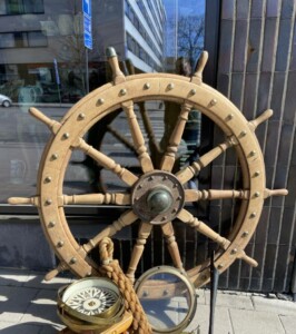 Mahtava ruori tammea, vuosiluku 1906, harvinaisemmat messinkiset taotut niitit vahvikkeina ympäri, hieno valettu messinkinen yksityiskohta myös yhdessä kädensijassa Mitat: Halk.152