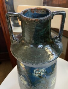 Koristevaasi savea, jugend-tyyli, 1800/1900-luku, käsinmaalattu Mitat: myöh.