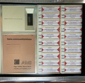 Jukebox Ami, vm.1973, toimiva ja hienokuntoinen. Levyjä 60 kpl sisällä ja lisälevyt 50 kpl mukaan.