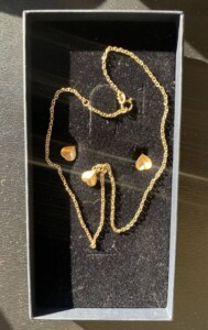 Eira-sarjan kaulakoru pronssia ja korvakorut 925-hopeaa/pronssia, design Vesa Nilsson Mitat: kaulakorun P.24 korvakorut 1×1