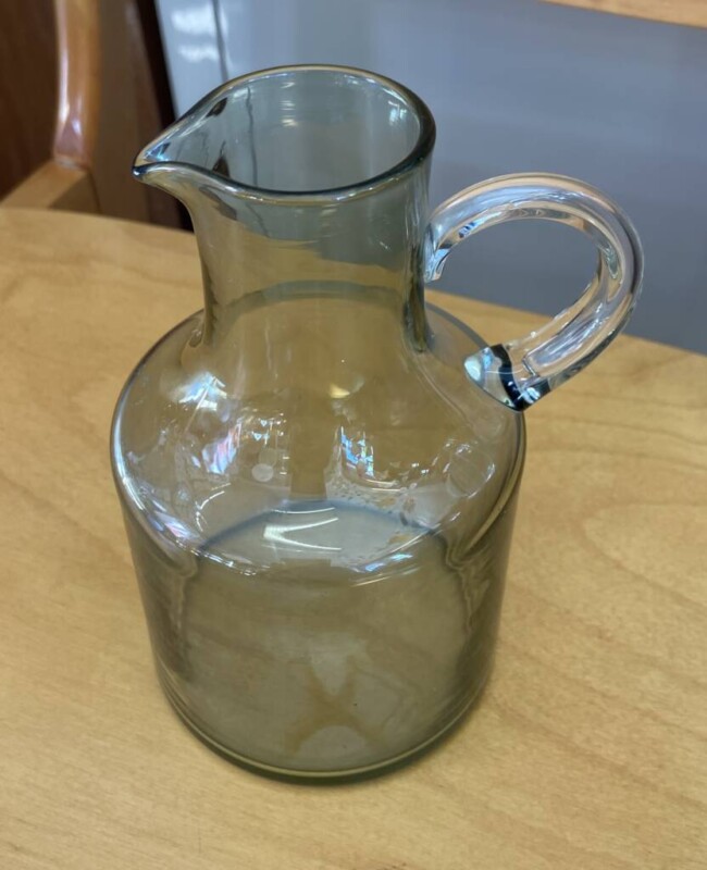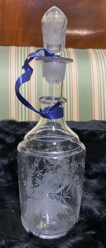 Erikoinen 1800-luvun lasinen käsinpuhallettu kaadin/karahvi, punttelipohja Mitat: K.26 L.19
