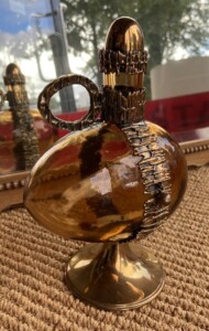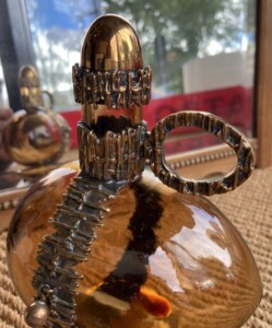 Pentti Sarpaneva Kaarna-sarjan lasikarahvi 1970-luku, Kumela Oy/Turun Hopea, metalliosta pronssia Mitat: K.22