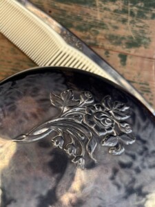 Kampauspöydän setti, 1900-luku, alpakkaa.