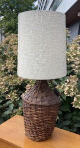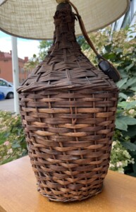Pöytävalaisin punottu jalka, sisällä lasipullo, 1930-luku Mitat: K.80