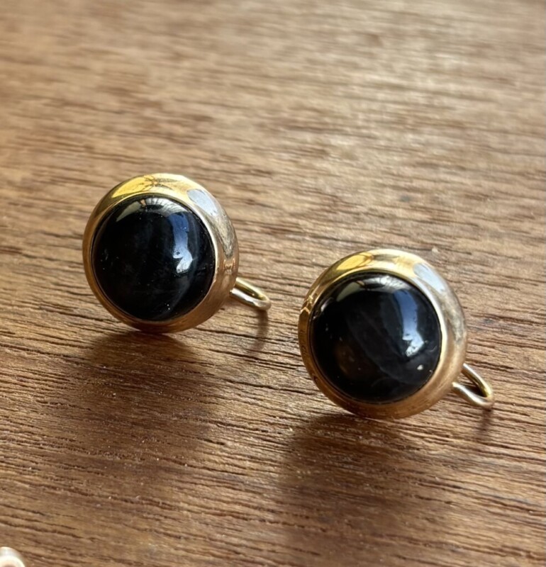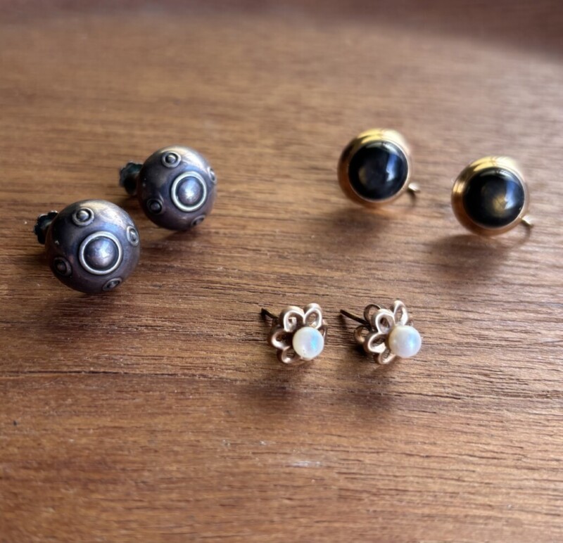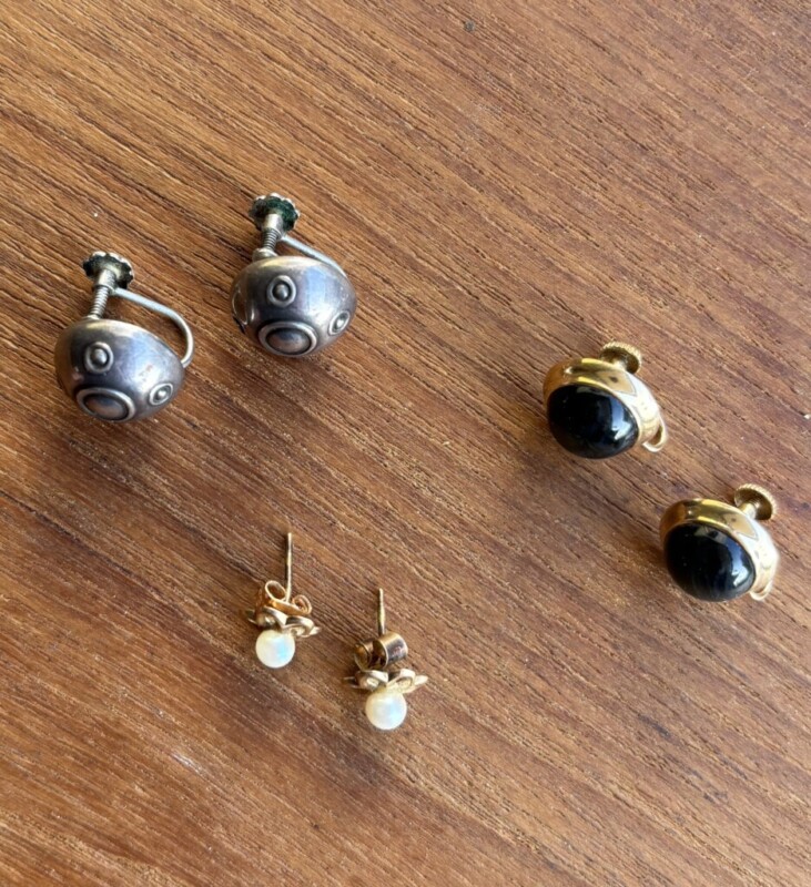 -oikealla Elis Kauppi/Kupittaan Kulta Oy korvakorut, kotimaista 585-leimattua kultaa.