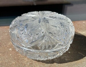 Lasinen kannelinen hiottu koru/makeisrasia Mitat: Halk.13 K.6